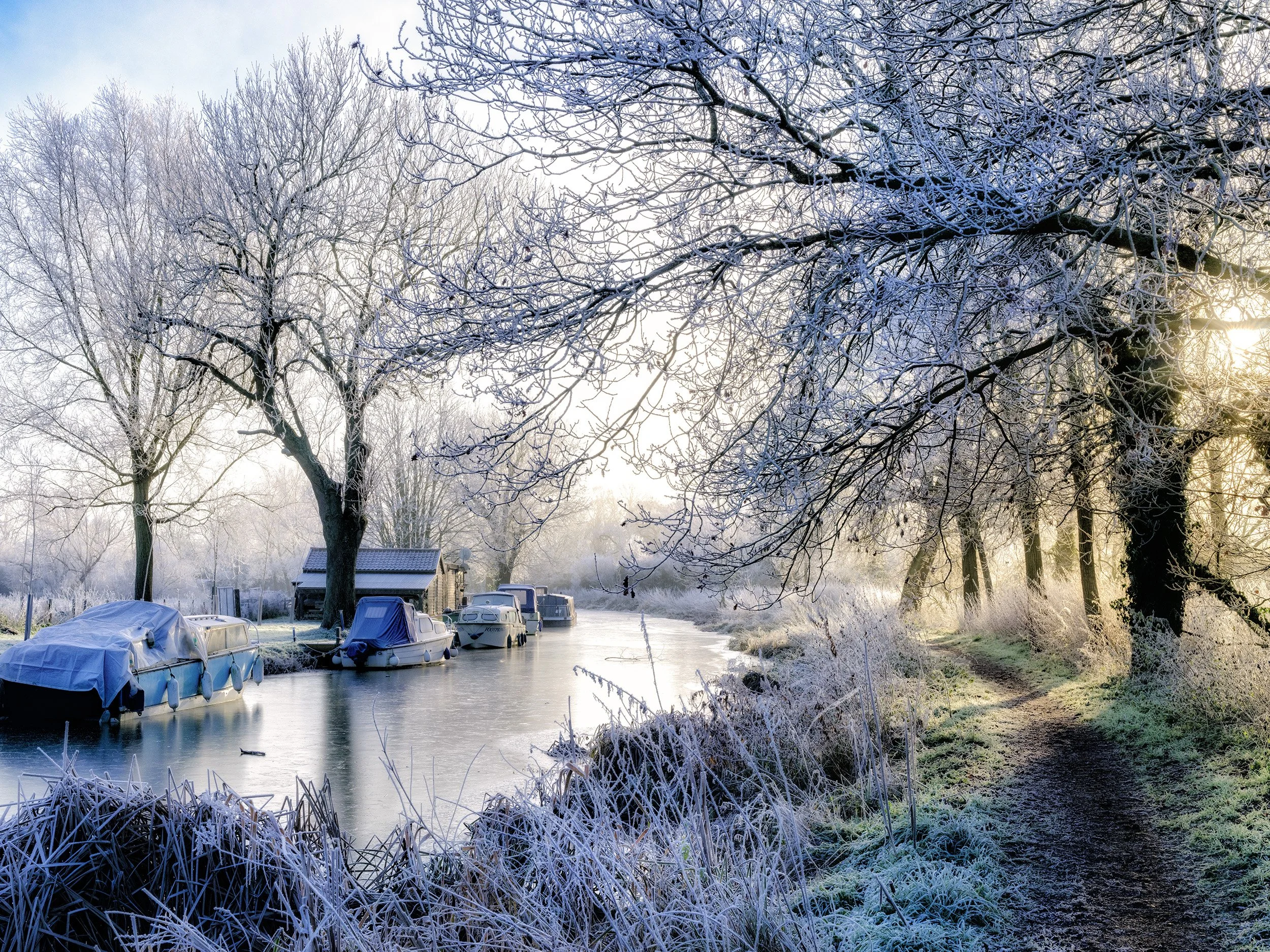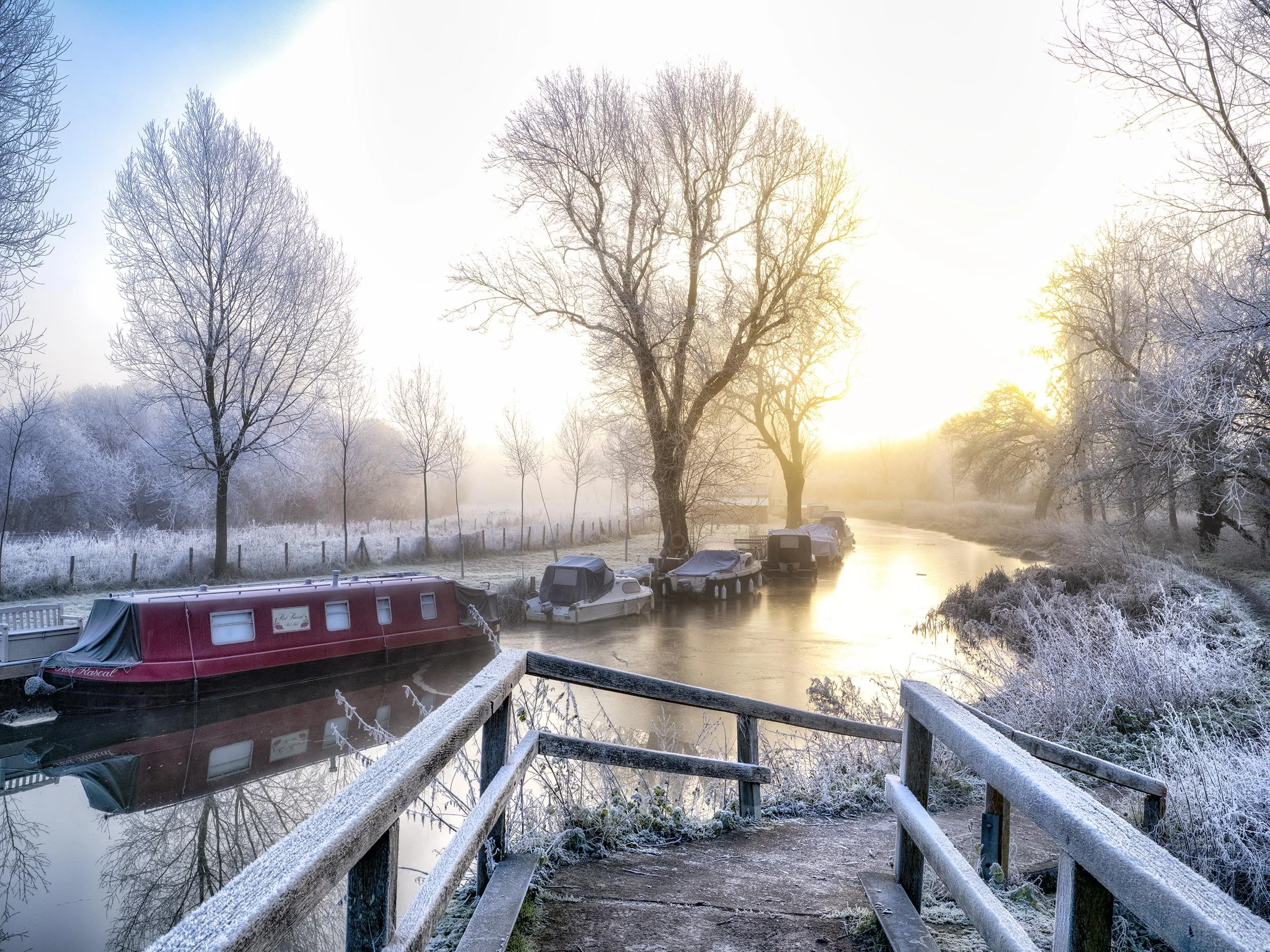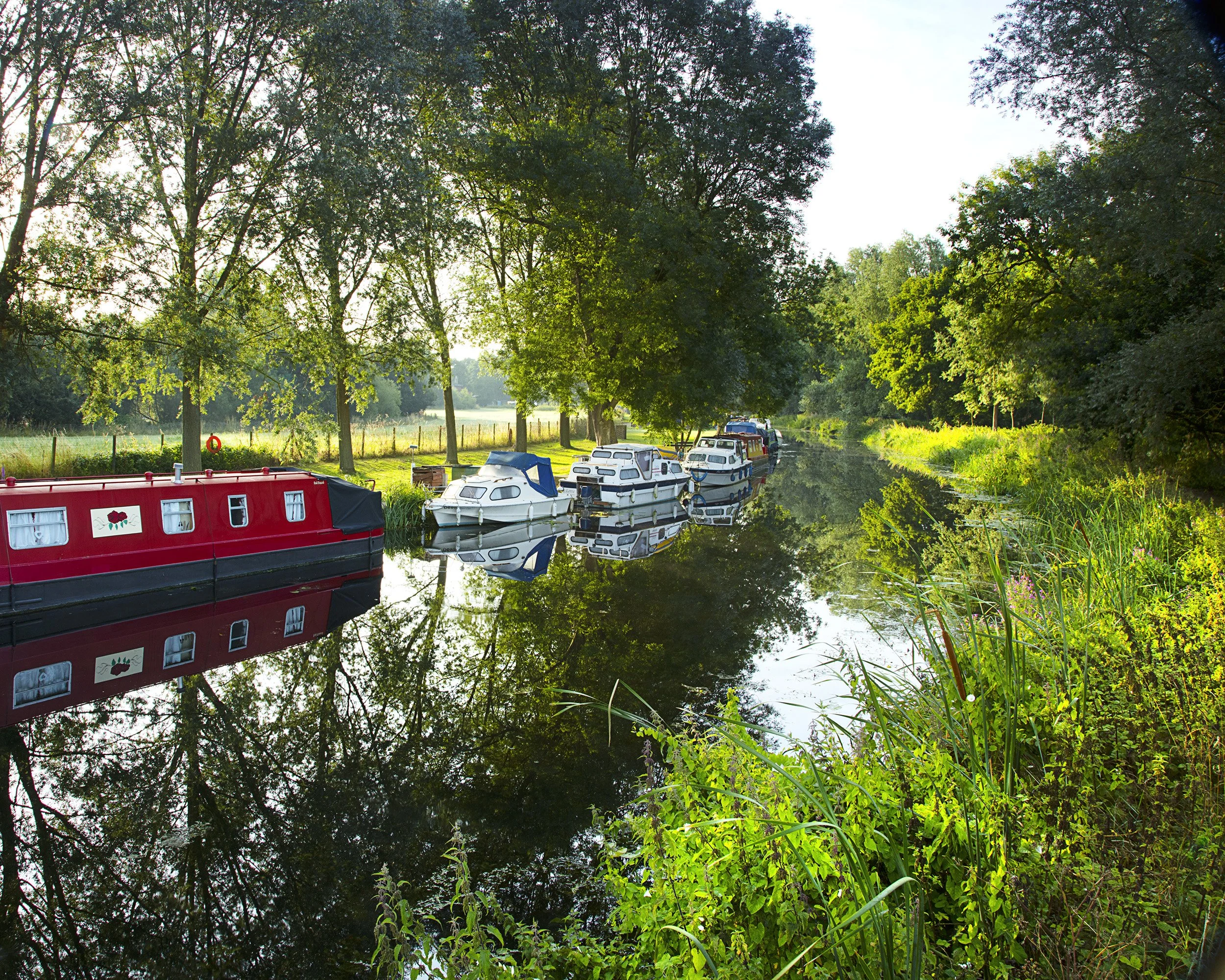 Continuing along the canal, houseboats moored on the opposite bank present excellent opportunities for capturing images of boats winding with the canal’s curve. Further along the towpath, a bridge provides an elevated perspective looking back toward the road, where elements of the bridge can serve as striking foreground features in photographs.