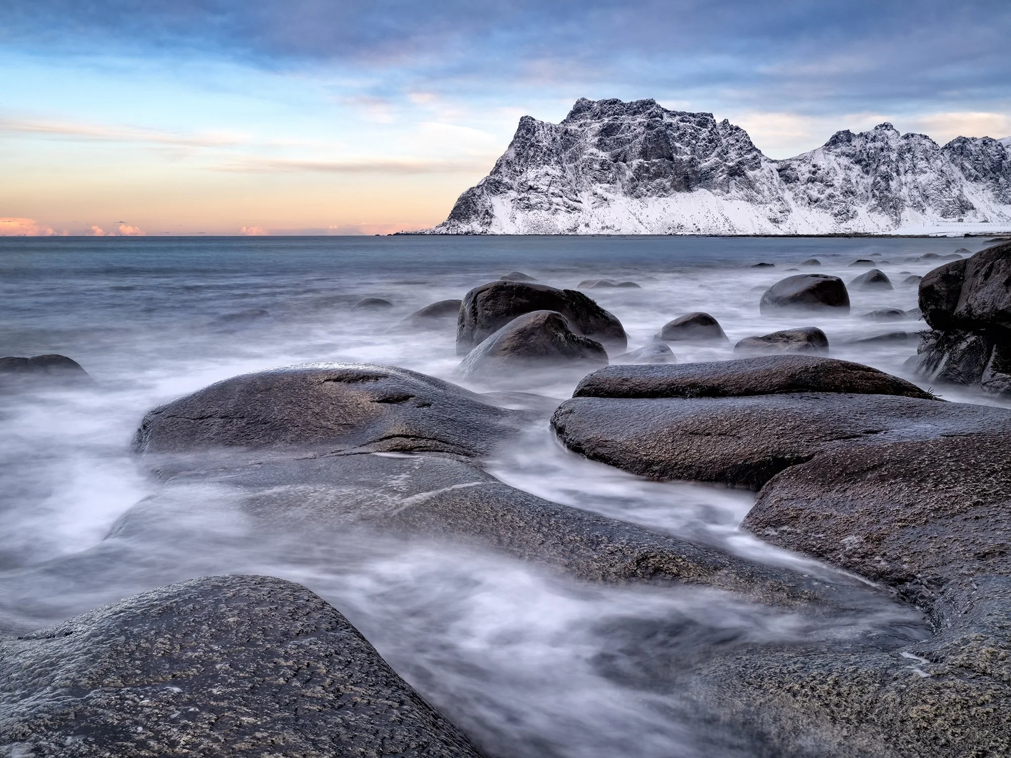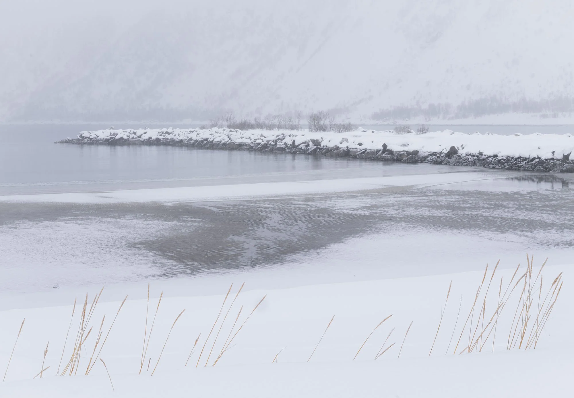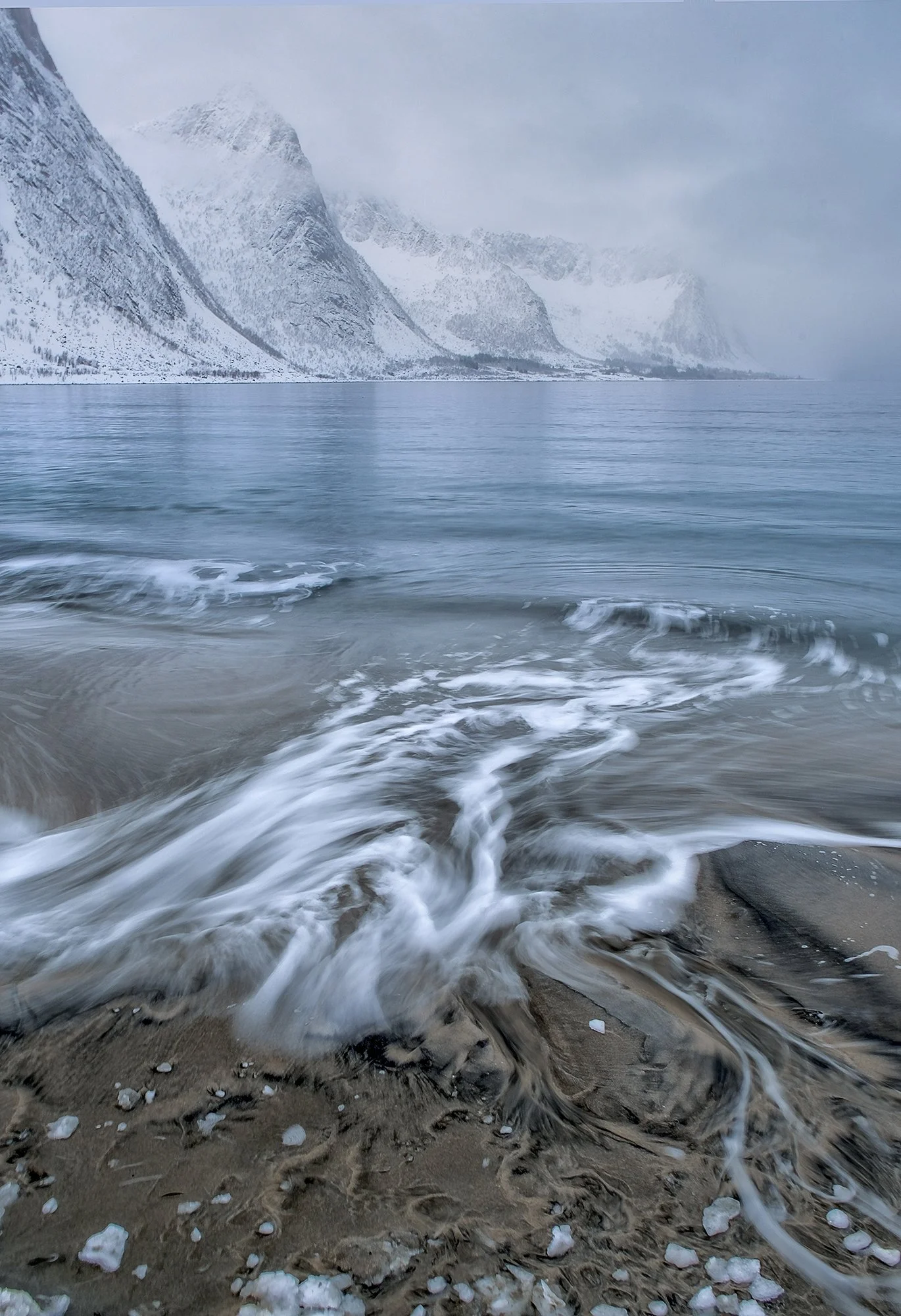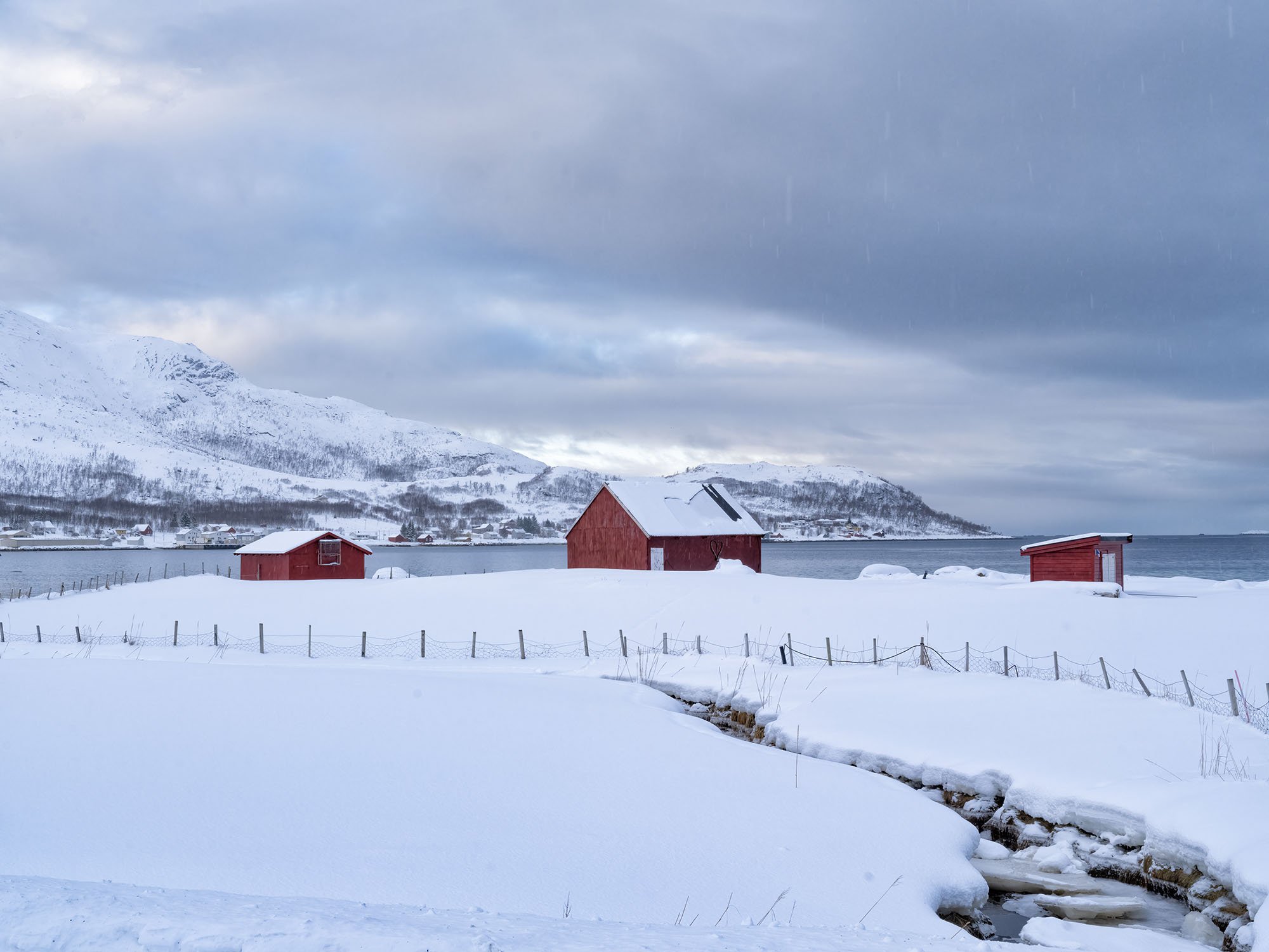 Norway Utakliev Beach at Dawn Hut in a Snow Storm Steinfjord Beach Patterns On the Road to Grotfjord From the Bridge at Hamnoy The Bridge to Sommaroy Ersfjord Beach Sommaroy Huts by the Road White Out at Steinfjord